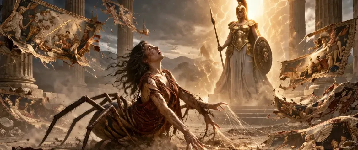 Arakne’nin hikayesi sadece bir yetenek öyküsü değildir. Athena ile karşı karşıya geldiğinde her şey değişir. Bir dokuma yarışmasıyla başlayan bu efsane, kibir, sanat ve tanrılara meydan okumanın bedelini anlatır.
