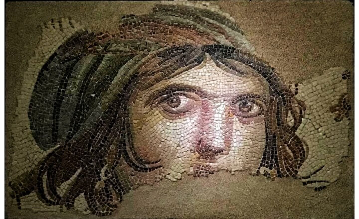 Romalılar döneminden kalan bir evin tabanında bulunan, kulağında küpeleri ve hüzünlü bakışlarıyla birden gündeme Çingene Kızı ismiyle oturan meşhur mozaik.