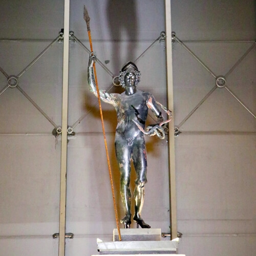 Gaziantep Zeugma Mozaik Müzesi’nin en önde gelen eserlerinden birisi olan Mars Heykeli aslında biraz Çingene Kız Mozaiği’nin gölgesinde kalmış diyebiliriz. Zeugma Antik Kenti’nin Roma dönemi eserlerinden olan Mars, M.S. 200 yılına tarihlenmektedir. 2000 yılında Zeugma’daki kazılarda bulunan 1.50 metre uzunluğundaki heykel, miğferli, elinde mızrağı olan bir savaşçı şeklinde yapılmış. Bulunduğunda gözleri gümüş ve altından yapılmış olan Mars’ın barışı simgelediği söylenmektedir. Ama Mars’ın Roma’da savaş tanrısı (Yunan mitolojisinde karşılığı Ares) olduğunu da hatırlatmakta fayda var.
