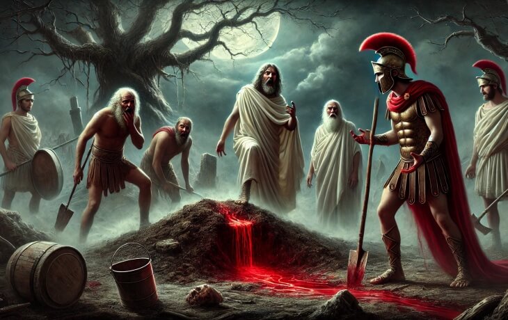 Aeneas, Trakya’da bir sunak inşa etmek için toprağa kazma vurduğunda beklenmedik ve korkunç bir olayla karşılaştı. Toprağı kazdığında, kesilmiş bir ağaç kökünden kan fışkırdığını gördü. Bu korkutucu olayın ne anlama geldiğini anlamaya çalışırken, bir ses duydu. Bu ses, Troya Kralı Priamos’un oğlu Polydorus’a aitti.
