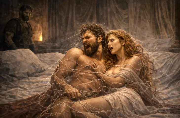 Afrodit ile Ares’in gizli ilişkisi nasıl ortaya çıktı? Hephaistos bu durumu nasıl fark etti ve kurduğu tuzakla iki tanrıyı nasıl yakaladı? Yunan mitolojisinde geçen bu çarpıcı hikayenin tüm detaylarını burada bulabilirsiniz.