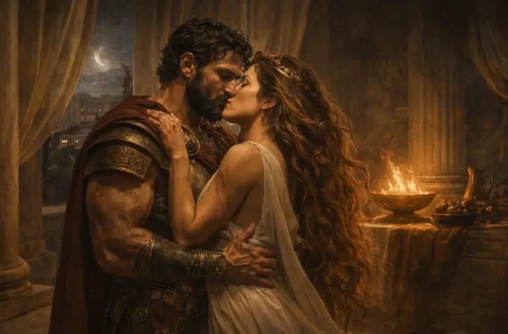 Hephaistos planını kurduktan sonra ortadan çekilmiş gibi görünür. Lemnos’a gittiği düşünülür. Bu detay önemlidir. Çünkü Ares’in harekete geçmesi için ortamın güvenli olduğuna inanması gerekir. Ares bu fırsatı kaçırmaz. Hephaistos’un yokluğundan emin olduktan sonra Afrodit’in yanına gelir.