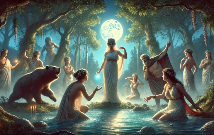 Artemis’in mitleri arasında en çok bilinenlerden biri, genç avcı Aktaion’un trajedisidir. Thebai kralı Kadmos’un torunu olan Aktaion, avcılıktaki maharetiyle ün salmıştı. Ancak kader onu, tesadüfen tanrıçanın en mahrem anına şahit olmaya götürdü.