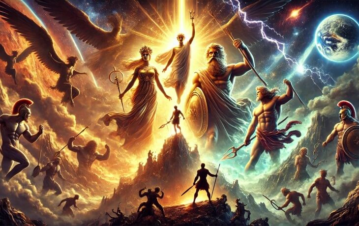 Devlerin Olimpos’a karşı ayaklandığı Gigantomakhia, yalnızca bir güç gösterisi değil, kozmik düzenin tartıya çıkarıldığı andır. Devler (Gigantes), çoğu anlatıda Uranos’un kanıyla “yaralanmış” topraktan, yani Gaia’dan türemiştir; doğaları ham, sınır tanımaz ve insan düzenine yabancıdır. Tanrıları devirmek için yeryüzünü ateşe vermeye, dağları üst üste yığmaya, göğü sarsmaya ant içerler. Tam bu noktada kadim bir kehanet devreye girer: Devler, yalnız tanrıların gücüyle öldürülemez; bir ölümlünün yardımı gerekir. Böylece sahneye Herakles çağrılır—tanrısal irade ile insan kudreti ilk kez aynı cephede birleşir.