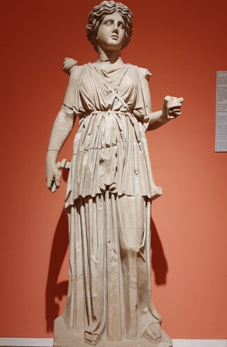 - Chitone → Kısa avcı tunik giyen tanrıça olarak.