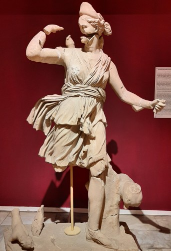 🟠 Artemis, sanatın her döneminde farklı yüzleriyle öne çıkmıştır: Anadolu’da bereketin ana tanrıçası, Yunanistan’da avın ve doğanın efendisi, Roma’da Diana adıyla halkın koruyucusu, modern çağda ise özgürlük ve bağımsızlığın sembolü.