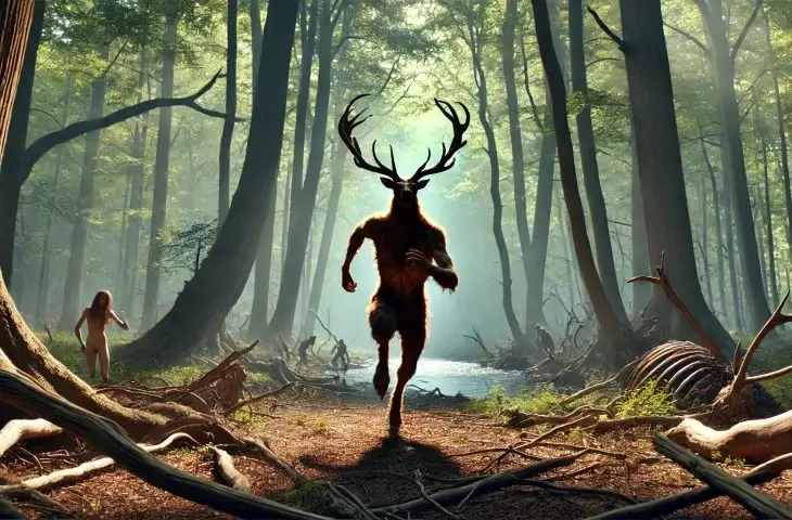 Bir sarsıntı, bir yanma… Aktaion’un alnından aniden filizlenen kemikler, korkunç bir hızla boynuzlara dönüştü. Derisi gerildi, kasları titredi; omuzları daraldı, elleri toynağa dönüştü. İnsan teninin yerini kısa, kızıl kahverengi tüyler aldı. Nefes alışı artık bir insanınkinden çok, ormanın içgüdüsüne ait bir varlığın soluğuydu. Ama gözleri hala insandı; şaşkın, korkulu ve pişman. Gözlerinin içindeki insanlık sönmeden önce, son bir kez etrafına baktı. Az önce saklandığı dere, Artemis’in suyu, nymph’lerin yüzlerindeki dehşet…