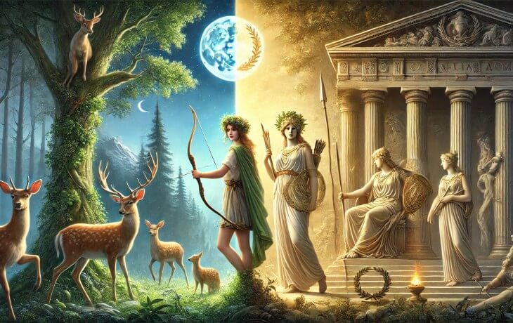 - Doğa/av (Artemis) ↔ şehir/uygarlık (Athena) tamamlayıcılığı.