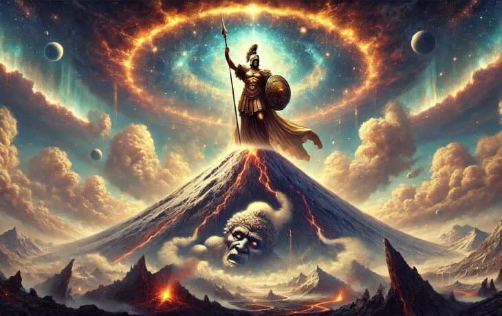 Athena’nın adı, tanrıların en korkunç düşmanlarından biri olan Typhoeus efsanesinde de geçer. Gaia’nın öfkesinden doğan bu kozmik canavar, devasa bedeni, ateş saçan gözleri ve göklere yükselen kanatlarıyla tüm Olimpos için büyük bir tehdit oluşturdu. Zeus’a meydan okuduğunda, tanrıların düzeni sarsıldı ve kaosun yeniden hâkim olacağı korkusu yayıldı.