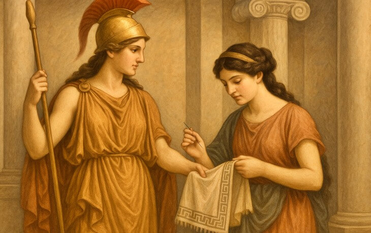 Dokuma, çömlekçilik ve zanaatların koruyucusudur. Arachne efsanesi, bu sıfatın en güçlü mitolojik anlatımıdır.