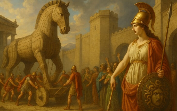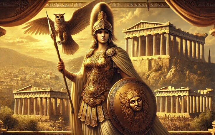 Athena, Yunan mitolojisinde bilgelik, stratejik savaş, sanat, zanaat ve adalet tanrıçası olarak bilinir. Roma mitolojisindeki karşılığı Minerva’dır. Onu diğer savaş tanrılarından ayıran özellik, kaba kuvvet yerine zeka ve stratejiyle zafer kazandırmasıdır.