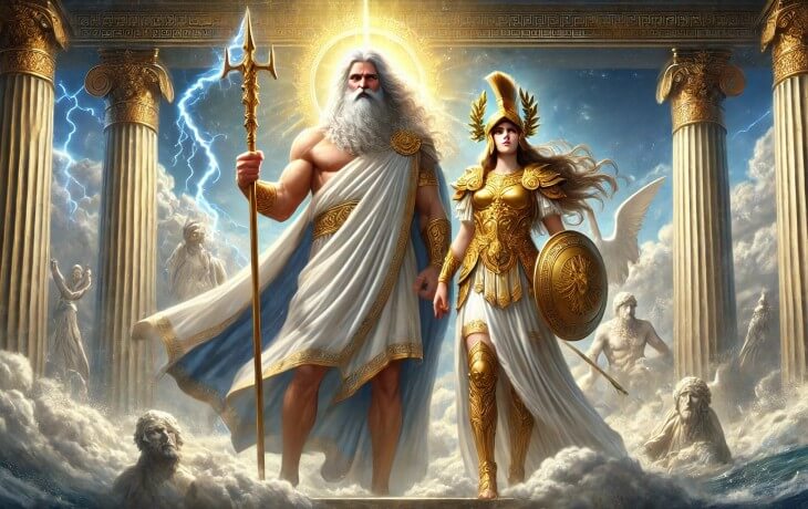 Athena, yalnızca bilgelik ve stratejik savaş kimliğiyle değil; Olimpos hiyerarşisindeki ilişkileriyle de belirginleşir. Aşağıdaki başlıklarda Zeus’tan Poseidon’a, Ares’ten Hermes ve Apollon’a kadar ana eksenleri, mitlere dayalı ana sahnelerle özetledim.