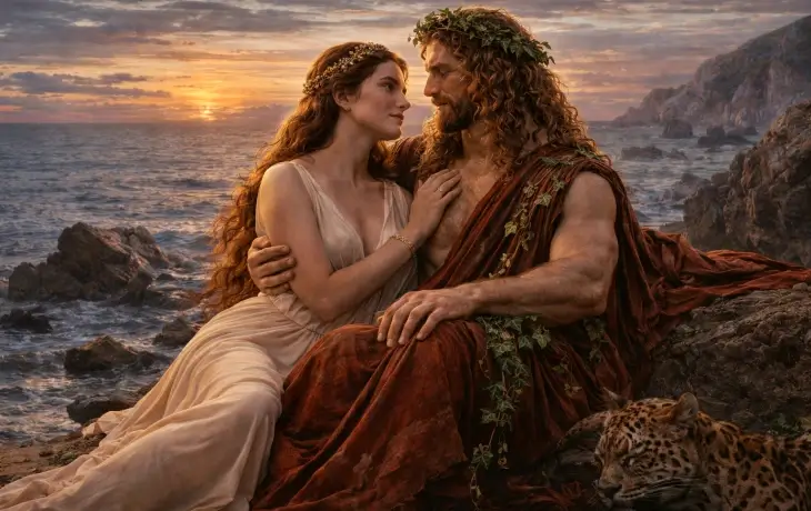 Ariadne, Theseus tarafından terk edildiğinde yalnız kalır. Bu yalnızlık, sadece fiziksel bir terk ediliş değil; aynı zamanda bir geçiş anıdır. Tam bu noktada Dionysos devreye girer. Onu bulur, yanında kalmasına izin verir ve zamanla onunla bir bağ kurar. Bu ilişki, diğer anlatılardan farklı olarak yıkım değil, bir yeniden kurma sürecidir.