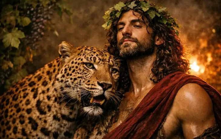Dionysos bazı tasvirlerde panter ya da leopar ile birlikte gösterilir. Bu hayvanlar onun doğayla olan bağını ve içgüdüsel gücünü temsil eder. Ehlileştirilmemiş, özgür ve kontrol edilmesi zor bir enerji…