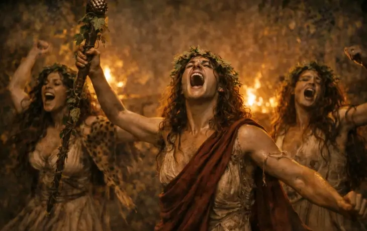 Dionysos’un en sert anlatılarından biri, Thebai Kralı Pentheus ile yaşanır. Pentheus, Dionysos’un bir tanrı olduğunu kabul etmez ve onun yaydığı ritüelleri şehir düzeni için bir tehdit olarak görür. Kendi otoritesini korumaya çalışırken, aslında anlamadığı bir güce karşı durduğunun farkında değildir.