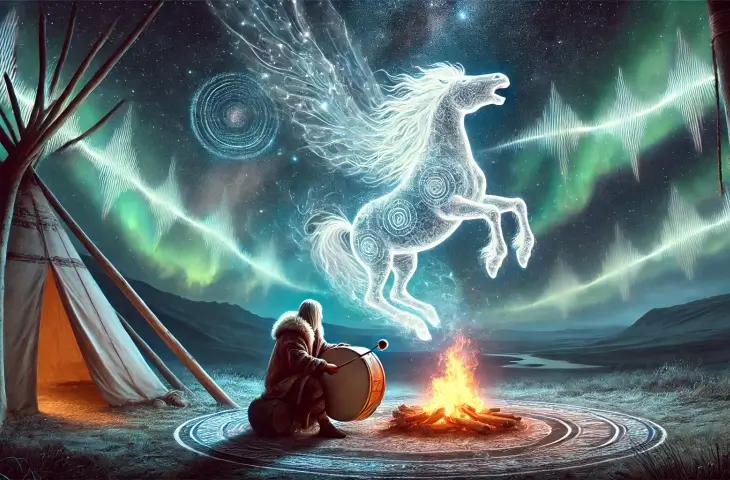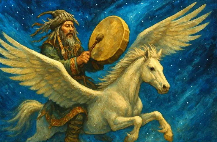 Yakut inancına göre, şaman transa geçtiğinde ruhu göğe yükselir; bu yolculukta onu taşıyan kutsal at, Tulpar’ın atası sayılır. Şamanın davul sesi Tulpar’ın toynak sesi olarak betimlenir. Her vuruş, ruhun gökyüzüne bir adım daha yaklaşmasıdır.