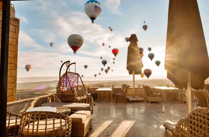 Kapadokya’daki birçok butik mağara otelde geniş teras alanları bulunur. Ancak bu teraslar çoğu zaman ortak kullanım alanıdır. Eğer konaklama tercihiniz daha özel bir alan yönündeyse, oda kategorisini incelerken özel teraslı veya suite terrace gibi ifadeleri kontrol etmek gerekir.