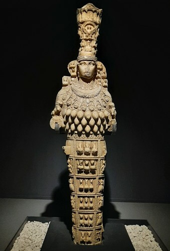 İonlar, kendi panteonlarındaki avcı Artemis ile bu güçlü yerel inancı birleştirdi. Böylece ortaya çıkan figür, klasik Yunan Artemis’inden çok farklıydı: “Efesli Artemis” ya da “Polymastos Artemis” (çok göğüslü Artemis) doğdu. Bu tasvir, onun yalnızca avcı değil; bereket, doğurganlık, doğa ve evrenin koruyucusu olarak kabul edildiğini gösterir.