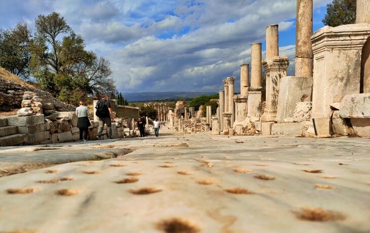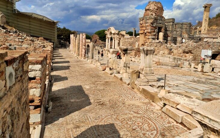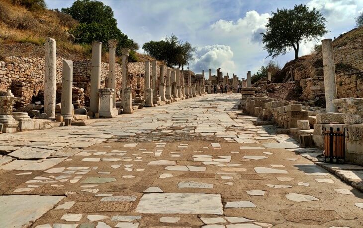 Kuretler Caddesi – Efes’in ana aksı, heykellerle dolu bir bulvar.